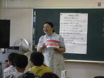 学校歯科医の能登先生にご協力いただき、歯科指導を行いました。