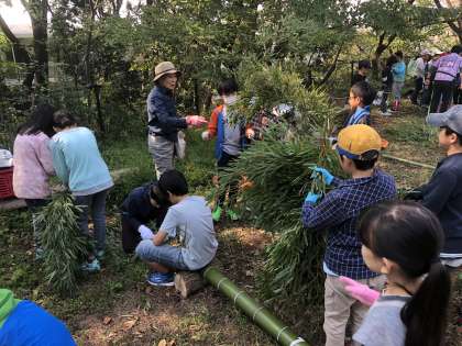 払った枝を集めて粗朶(そだ)たばを作ります。