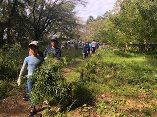 麻縄でしばった粗朶を運びます。仮置き場は山のようになりました。