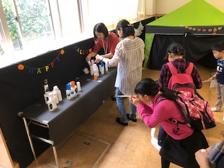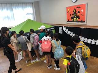 ボップ棟1階の占いの館とおばけ退治ゲームです。おばけ退治ゲームは、割りばし鉄砲でおばけを倒します。(占いの協力 占いシスターズ)