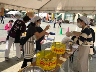 ポップコーンコーナーでは、塩味とキャラメルシュガー味が用意されています。(協力 ソフトボール部、明正おやぢの会)