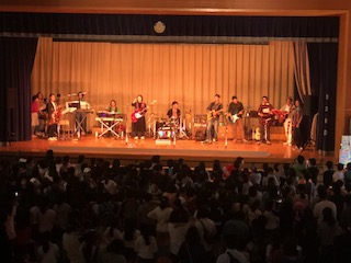 幕が上がり、いよいよMMCB(MEISEI MUSIC CLUB BAND)の登場です! 場内が暗くなってMCが始まり、場内に期待と興奮がたかまってきました。