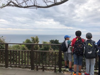 眺望の素晴らしさに歓声をあげながら、しおりの地図と見比べて散策を楽しみます。