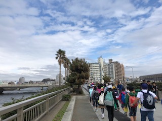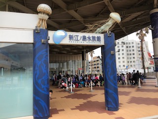 弁天橋から新江ノ島水族館に徒歩で移動します。青空が出てきました。