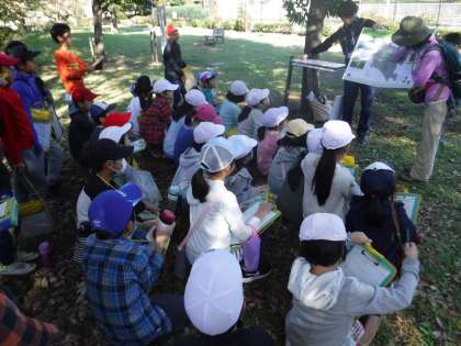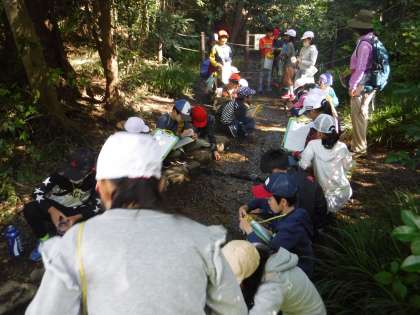里山で秋の植物や生き物について、見て触って観察してきました。水辺ではサワガニの抜け殻を見つけたり、鉄塔広場ではいろいろなどんぐりを拾ったりして、秋の里山を肌で感じていました。
