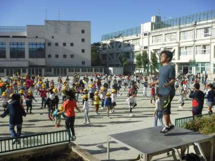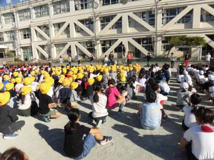 1,2,3年生が体育朝会で短縄とびを行いました。初めに跳ぶときのコツを教えてもらい、前跳び・後ろ跳び・駆け足跳びを練習しました。