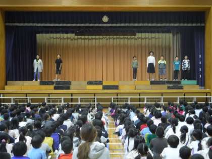 代表委員会の児童が舞台発表会のテーマとプログラムを発表してくれました。