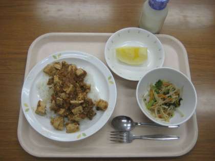 マーボー豆腐丼 牛乳 ナムル りんご