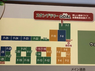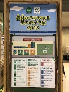 東京ビッグサイトの東6ホールの中の「森林(もり)からはじまるエコライフ展」のコーナーの案内板です。明正小はF-23です。子どもたちはバス内で1回目のミニ昼食中ですが、明正小のブースには既に保護者の方々がおいでくださっています。ありがとうございます。