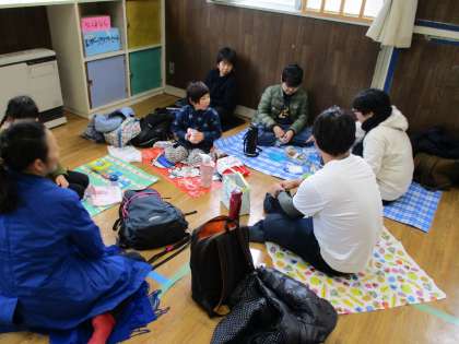 待ちに待った昼食。寒かったので、宮崎こども文化センターの部屋を借りて、お昼ご飯を食べました。おいしそうなお弁当が並び、みんな完食。そして、作っていただいたことに感謝。