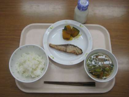 ごはん 牛乳 ぶりのゆうあん焼き かぼちゃの含め煮 沢煮椀