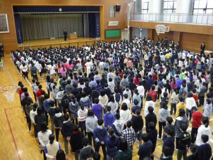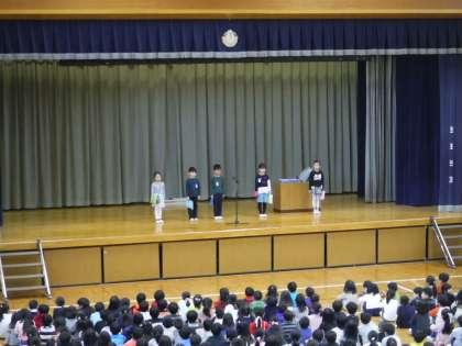 1校時に2学期の終業式を行いました。校長先生からは、2学期の振り返りとともに、交通安全について話がありました。続いて、1年生とひまわり学級の代表児童が2学期に頑張ったことを発表しました。