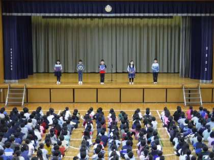 児童代表の言葉は、2年生が3学期の目標を発表しました。