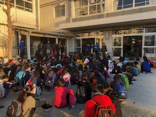 6年生が自ら決めたスローガンは「真剣に歴史と政治に向き合おう」です。国会議事堂と江戸東京博物館の見学に出発です。
