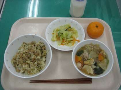 そぼろごはん 牛乳 即席漬け すいとん みかん