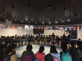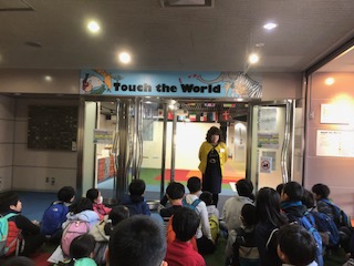 “Touch the World” (多文化体験コーナー)は教育センターの2階に10月にオープンしました。オリエンテーションの後、世田谷区のジオラマの周りに集合しました。