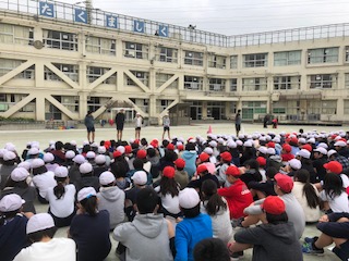 高学年児童による校内持久走大会が始まりました。児童代表の言葉を6年生が述べました。しっかりと準備運動を行い、安全第一、健康第一で実施します。応援よろしくお願いします。