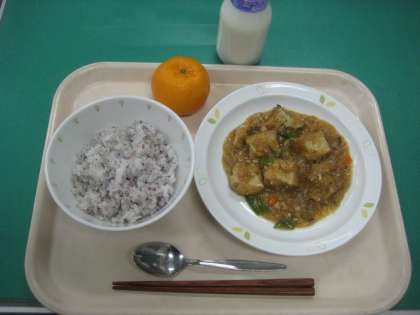 ゆかりごはん 牛乳 生揚げのそぼろあんかけ ぽんかん