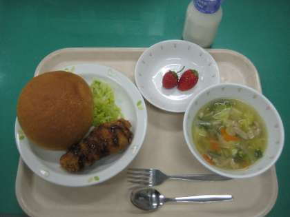 セルフフィッシュサンド 牛乳 白いんげん豆とブロッコリーのスープ いちご