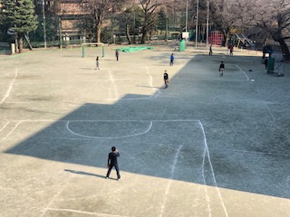 校庭でPTAソフトボール部と教員チームの交流試合を行いました。来週の土曜日はサッカーでの交流を予定しています。