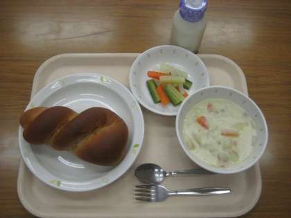 黒砂糖パン 牛乳 クリームシチュー ピクルス