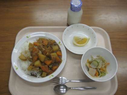 カレーライス 牛乳 こんにゃくサラダ はるか
