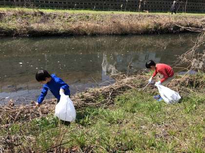 野川の土手に下りると様々な植物が春の訪れを教えてくれます。茂みに隠れたゴミを丁寧に回収していきます。