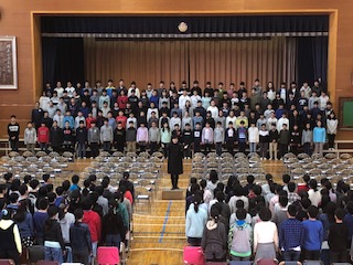 午後体育館で卒業式の予行を行いました。卒業生入場、卒業証書授与など当日の式次第に従って退場までの全てを行いました。卒業式は小学校生活の集大成となる儀式的行事です。練習の積み重ねによって表情も立ち振る舞いも「6年生」から「卒業生」に変容してきました。心の構えが見事に姿に表れています。在校生代表として参加する5年生が大変立派に式を支えています。歌声も美しく響いています。