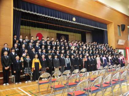 本日、第63回卒業式が執り行われました。卒業生136名は、最後の行事を見事にやり遂げ、晴れやかな表情で巣立っていきました。在校生代表として参加した5年生の態度も大変立派でした。
