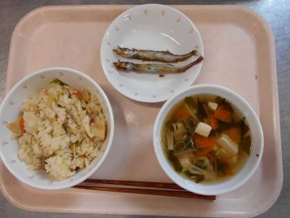 たけのこご飯 牛乳 焼きししゃも すまし汁