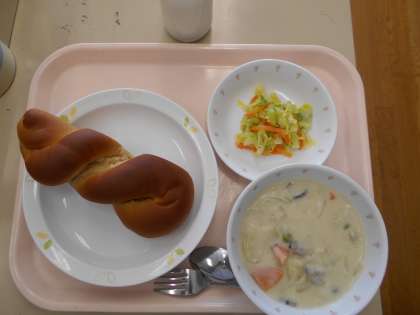 黒砂糖パン 牛乳 クリームシチュー キャベツサラダ