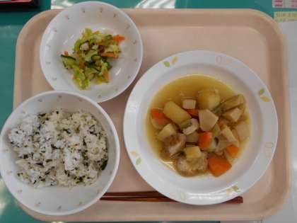 わかめごはん 牛乳 春野菜のうまに 即席漬け