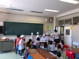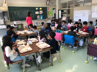 1年生は今日が給食のスタートです。給食当番のやり方、配膳の仕方、安全に机まで運ぶ歩き方など、よく考えてよく聞いてよく学んでいました。みんな給食をとても楽しみにしていたようです。