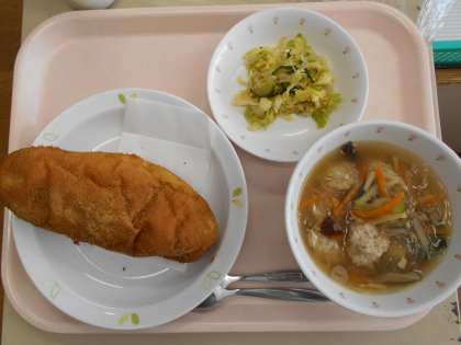 あげパン 牛乳 肉団子入り春雨スープ 野菜の中華風味