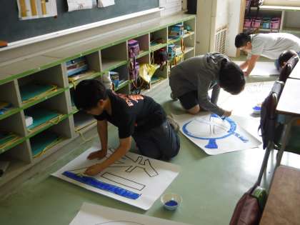 高学年の児童は、様々な係活動を通して運動会を支える役割を果たします。今日は1回目の集まりがあり、係ごとに打ち合わせや作業を進めていました。