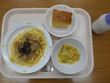 おろしスパゲティ 牛乳 キャベツとコーンのソテー りんごのケーキ