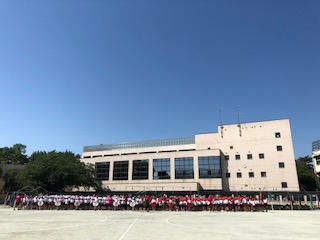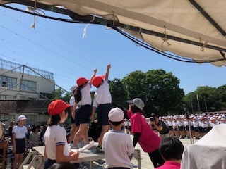 「おーい 世田谷」の曲に合わせて入場行進が始まりました。はじめの言葉は1年生が元気いっぱいに発表しました。