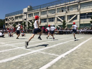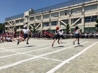 自分の力を発揮し最後まで走り抜く最上級生の迫力ある走りは見事です。大きな拍手が送られます。審判の係の5年生はしっかりした仕事ぶりで6年生の活躍を支えます。