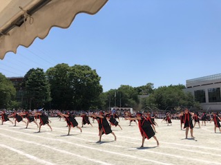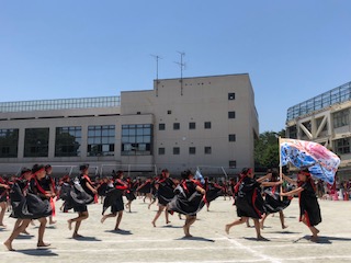 今年は子どもたちで背中に入れる文字を「炎」にしました。炎が燃え盛るように熱い心で最後まで全力で演技します。学年目標でもある「一致団結」をスローガンにしました。そろった動き、力いっぱいの踊りに気持ちを込めた5年生に大きな拍手をいただきました。