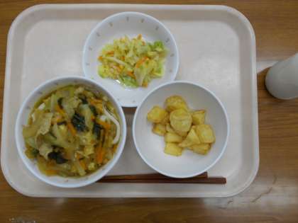 カレーうどん 牛乳 じゃがいものからあげ コーンサラダ