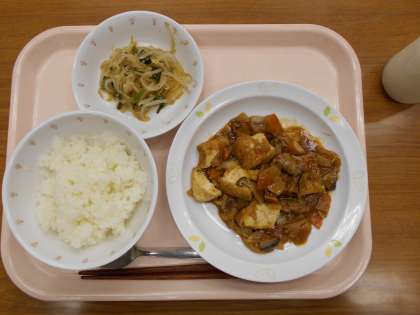 ごはん 牛乳 家常豆腐 もやしのごま風味
