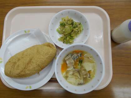 あげパン 牛乳 ワンタンスープ 野菜の中華風味