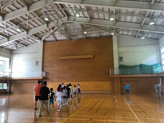 避難訓練をして体育館に集合し、続けて15校そろって開園式を行いました。