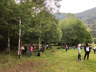 広い芝生で思いっきり遊んでからバスで移動し、お土産の購入です。お小遣いを受け取り、お財布にしっかりしまってからバスを降りました。