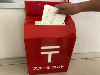 大事なお土産を大きなバッグに各自しまってから、ハガキ書きをしました。心を込めて書いている様子が写真から伝わると思います。6年生がみんなのハガキをスクールポストに投函してくれました。