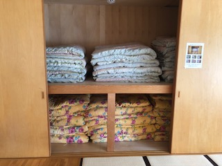 たくさんの布団を力を合わせて片付けました。清掃が終わり来た時よりも美しいくらいになりました。
