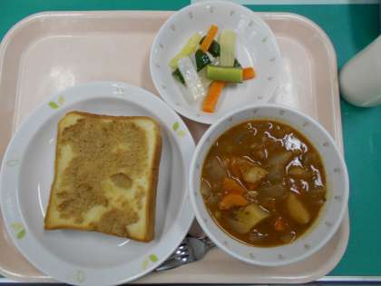 セサミトースト 牛乳 トマトシチュー ピクルス