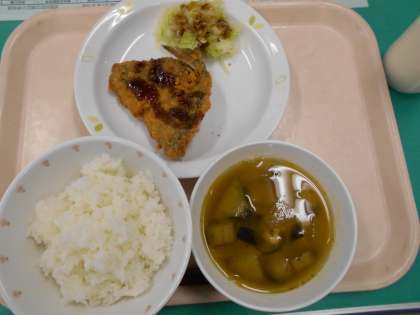 ご飯 牛乳 あじフライ キャベツ 夏野菜のみそしる