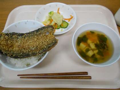 さんまのかばやき丼 牛乳 そくせきづけ すまし汁