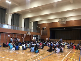 体育館での出発式を終え6年生が日光に出発します。2泊3日の集団宿泊的行事です。お見送りありがとうございます。